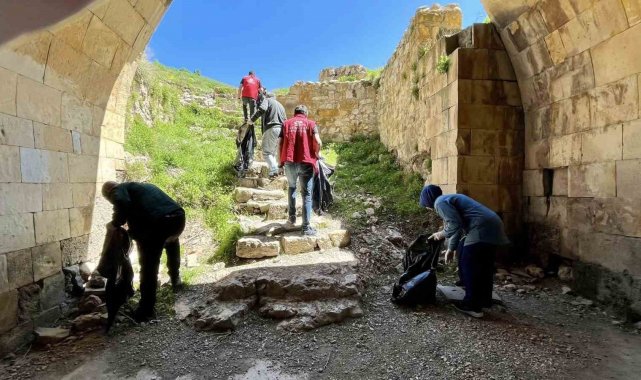 Müzeler Haftası dolayısıyla tarihi Bayburt Kalesi'nde temizlik çalışması yapıldı.