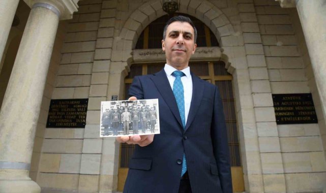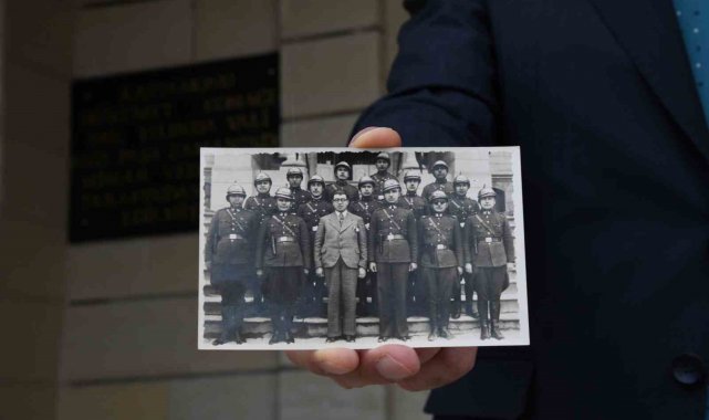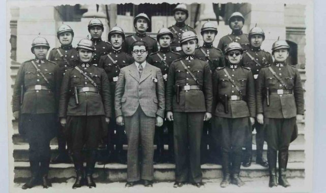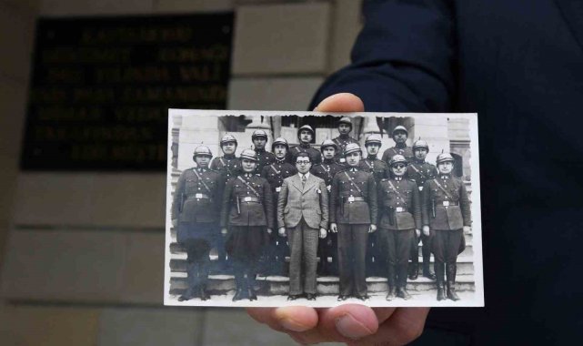 Kastamonu İl Emniyet Müdürü Kayhan Ay ve personeli, tarihi Kastamonu Valiliği binası önünde 88 yıl önce çekilen fotoğraftaki aynı pozu vererek fotoğraf çektirdi.