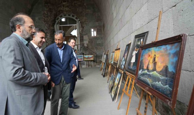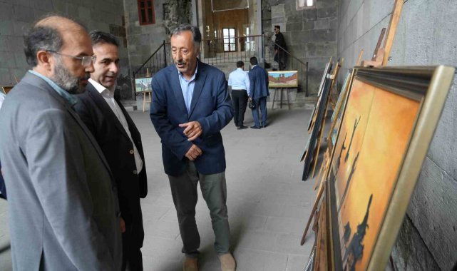 Erzurum'da tarihi Çifte Minareli Medrese'de 15'inci kişisel sergisini açan Fesih Özyurt, eserlerindeki tarihi ve kültürel konularla ilgi görüyor.