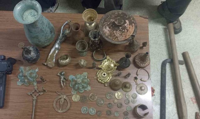Cumhuriyet Başsavcılığı'ndan izin alan ekipler, tarihi eser kaçakçılarına düzenlediği baskında suçüstü yakaladı. Şüphelilerin üzerinde kazı ve tarihi eserleri bulmak için el dedektörü, kazma, kürek, levye, kamera ve alan tarama makinesi geçirildi. Alanda yapılan aramada ise, tarihi eser olduğu değerlendirilen, sikke paralar, heykeller ve yaklaşık 50 parça çeşitli eserler bulundu. Malzemelere el konulurken, 3 şüpheli ifadelerinin ardından adliyeye sevk edilecek.