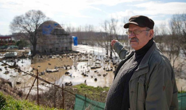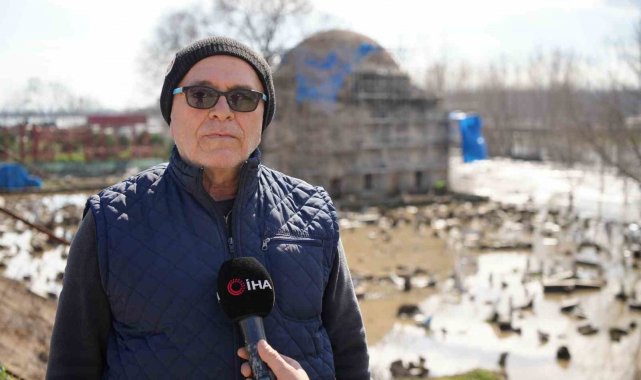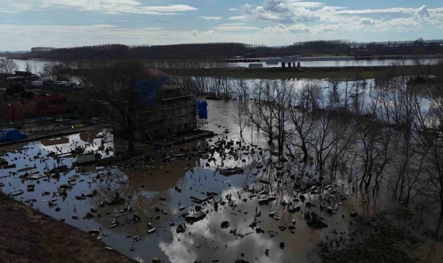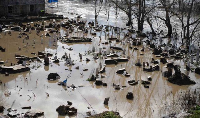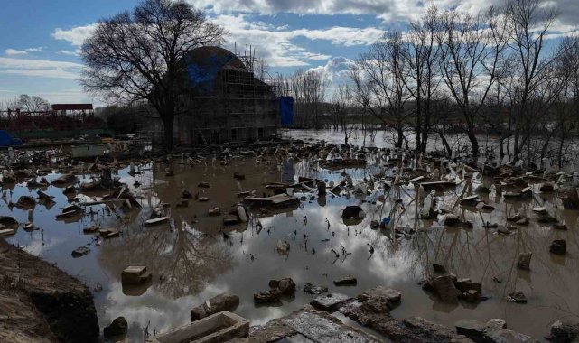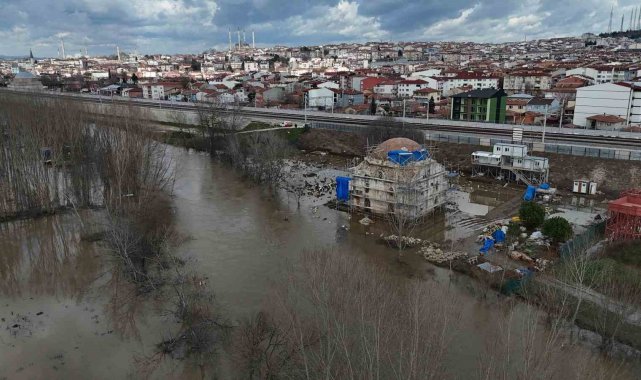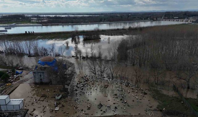 Edirne'de Tunca Nehri'nin debisi yükselince, 15'inci yüzyıl eseri Evliya Kasım Paşa Camii'nin restorasyon şantiyesi ve hazire bölümü sular altında kaldı.