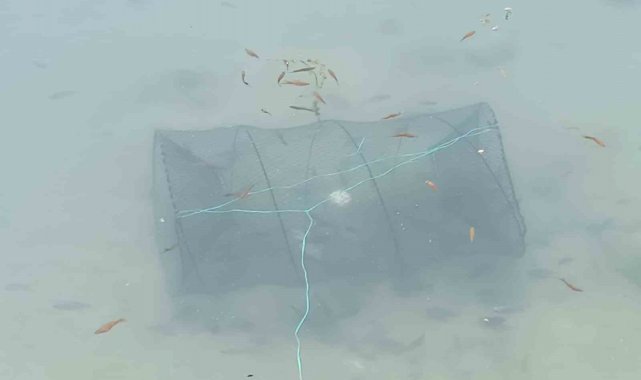 Tarihi hamam kalıntıları arasındaki süs balıklarını kaçak avlayanlara suç üstü