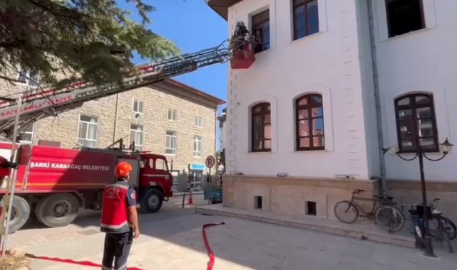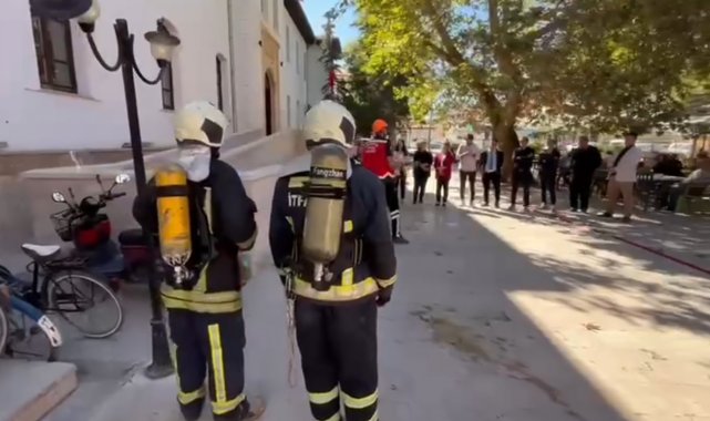 Isparta'nın Şarkikaraağaç ilçesinde tarihi Hükümet Konağı'nda gerçekleştirilen yangın tatbikatı gerçeğini aratmadı.