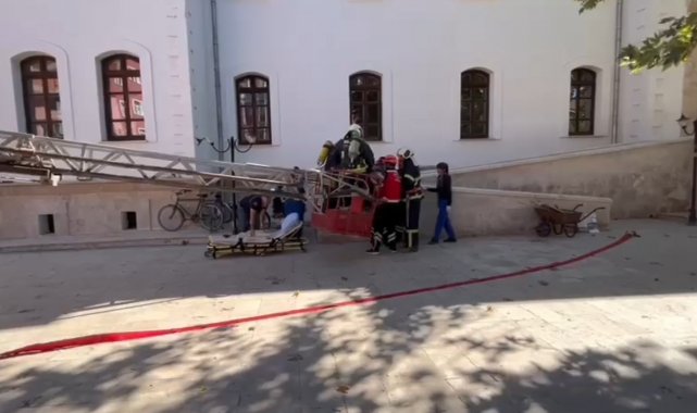 Tarihi hükümet konağında gerçeği aratmayan yangın tatbikatı