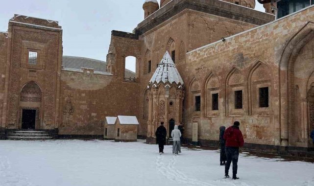 UNESCO Dünya Mirası Geçici Listesi'nde yer alan İshak Paşa Sarayı, kış mevsiminde de yerli ve yabancı turistlerin ilgisini çekmeye devam ediyor. Karla kaplanan avluları, duvarları ve siluetiyle dikkat çeken saray, bölgeye gelen fotoğraf tutkunları için eşsiz manzaralar oluşturdu.