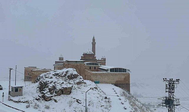 Ağrı'nın Doğubayazıt ilçesinde yer alan ve Osmanlı mimarisinin en önemli eserleri arasında gösterilen İshak Paşa Sarayı, etkili olan kar yağışıyla birlikte beyaza büründü. Tarihi yapı, karla bütünleşen ihtişamlı görünümüyle ziyaretçilerine görsel bir şölen sundu.