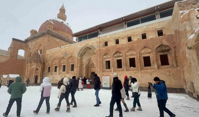 Osmanlı mimarisinin en önemli eserleri arasında gösterilen İshak Paşa Sarayı, kış aylarında da ziyaretçilerin ilgisini çekmeye devam ediyor. Kar yağışıyla birlikte ortaya çıkan eşsiz manzara, yerli ve yabancı turistlerin yanı sıra fotoğraf tutkunlarının da ilgisini çekti.