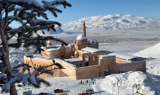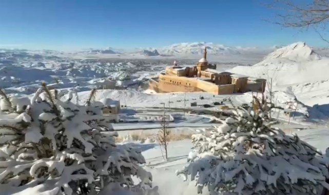 Tarihi dokusu ve görkemli yapısıyla dört mevsim ayrı bir güzelliğe sahip olan İshak Paşa Sarayı, kışın sunduğu görsel şölenle Ağrı'nın kültürel ve turistik değerlerini bir kez daha ön plana çıkarıyor. Karla kaplı dağlar ve sisle bütünleşen saray silueti, ziyaretçilere unutulmaz anlar yaşatıyor.