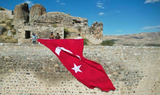 Tarihi kalenin surlarına 50 metrekarelik dev Türk bayrağı asıldı
