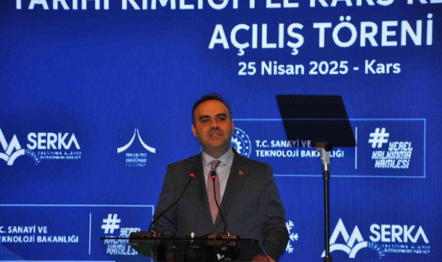 Sanayi ve Teknoloji Bakanı Mehmet Fatih Kacır, "Kadim coğrafyamızın kültür belleklerinden Kars'ımız da bu şehirlerimizden biridir. Kars Kalesi, Ani Ören Yeri, Çıldır Gölü gibi kendine özgü birçok değeriyle adeta tarihi ve tabii bir açık hava müzesi niteliğindeki şehrimiz, özellikle son yıllarda ülkemizde önde gelen turizm destinasyonlarından biri haline geldi. Kars'ın tarihî ve doğal zenginliklerini keşfetmek isteyen yerli ve yabancı turistler şehir ekonomisine büyük bir katkı sağladı. Bugün açılışını gerçekleştirdiğimiz, yaklaşık 250 milyon lira bütçeli 'Tarihi Kimliğiyle Kars Kenti Projesi' ile de Kars'ın turizmde marka değerini yükseltecek bir dönüşüm sürecini başlattık. Haydar Aliyev Caddesi üzerinde yer alan 23'ü tescilli 32 binanın görsel kimliğini güçlendirdik. Kamu binalarını turizme kazandırdık. Caddenin alt yapı, aydınlatma ve çevre düzenlemelerini gerçekleştirerek yaklaşık 700 metrelik bir turistik güzergâh oluşturduk. UNESCO Dünya Mirası listesinde olan Ani Ören Yerinde ziyaretçi deneyimini zenginleştirecek çevresel iyileştirme çalışmaları gerçekleştirdik. Kars'ın turizm potansiyelini ortaya koymak ve görünürlüğünü artırmak adına kapsamlı bir tanıtım ve kapasite geliştirme çalışması yürüttük. Biz, Kars'ın sahip olduğu cevheri şehrimiz ekonomisine kazandırmayı sürdüreceğiz. Kars kalkınma seferberliğimizin güçlü şekilde hissedildiği şehirlerimizin arasında geliyor. Sanayi ve Teknoloji Bakanlığı olarak; şehrimizin çok boyutlu kalkınmasını yatırım teşviklerimizle, planlı sanayi alanlarıyla, nitelikli projelerle destekliyoruz. Son 22 yılda; Şehrimizde gerçekleşecek yatırımlar için 223 teşvik belgesi düzenledik. 20 milyar lira sabit yatırımın ve 12 binden fazla istihdamın önünü açtık. Şehrimiz sanayiinin kalbinin attığı Kars OSB'mizin büyüklüğünü 149 hektardan 253 hektara çıkardık. OSB'mizin altyapı çalışmalarına 292 milyon lira kaynak sağladık. Organize sanayi bölgemizin arıtma tesisini de hızla tamamlayacağız. İkinci organize sanayi bölgemizde de kamulaştırma çalışmalarını hızlandırıyoruz.