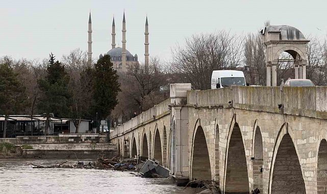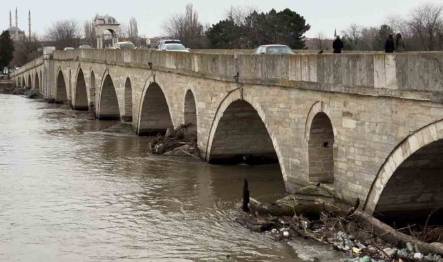 Nehrin üst havzasından sürüklenen ağaç gövdeleri, dev tomruklar ve evsel atıklar, kentin simgelerinden tarihi Meriç Köprüsü'nün kemerlerinde birikti. Suyun yüzeyini kaplayan plastik şişe ve kirlilik tabakası, tarihi köprünün ayaklarında adeta bir set oluşturdu.
