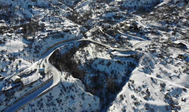 Gümüşhane'nin eski yerleşim yeri olan tarihi Süleymaniye Mahallesi kar yağışının ardından dronla görüntülendi