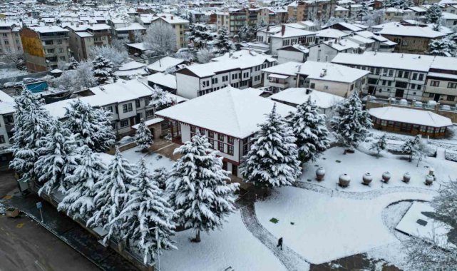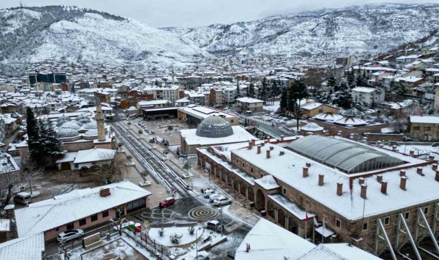 Tokat'ta etkili olan kar yağışıyla birlikte beyaza bürünen Sulusokak bölgesindeki tarihi yapılar, kartpostallık görüntüler oluşturdu.