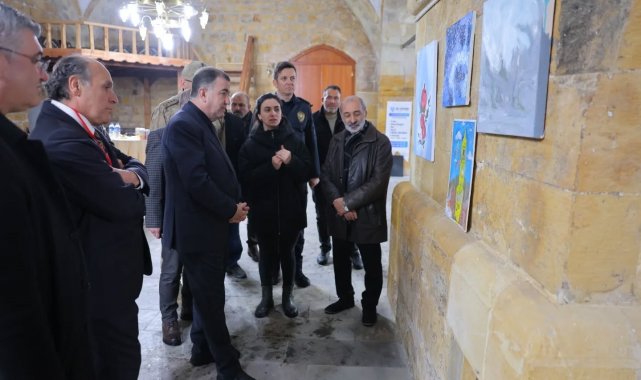 Tarihi Taşhan'da sanatseverlerle buluşulan sergide, 21 sanatçının elinden çıkan birbirinden değerli eserler yer aldı.