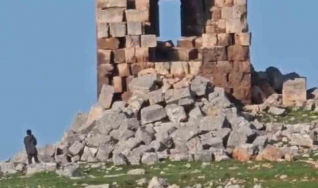 Şanlıurfa'da yaklaşık 2 bin yıllık olduğu belirlenen Nemrut'un Tahtı olarak bilinen Yakup Manastırı'nın kalıntıları üzerinde 2 kişini halay çekmesi cep telefonuna yansıdı.