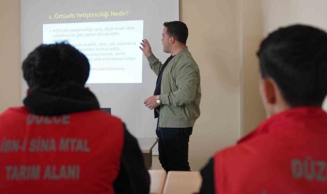 Düzce Belediyesi'nin yerel üretimi teşvik etmek ve tarımsal kalkınmayı desteklemek amacıyla kurduğu Tarım Akademisi, gençleri modern tarım teknikleri ile buluşturmaya, mesleki bilgi ve becerilerini geliştirerek bilinçli üreticiler oluşmasını sağlamaya devam ediyor. Akademinin Aziziye Mahallesi'nde bulunan uygulama alanında ziraat mühendisleri tarafından karşılanan İbn-i Sina Mesleki ve Teknik Anadolu Lisesi öğrencileri, ilk olarak teorik eğitime tabi tutuldu. Slaytlar eşliğinde seracılık, mantar yetiştiriciliği, aşılama teknikleri, budama, bitki koruma yöntemleri, topraksız tarımda yetiştiricilik ve tarla bitkileri konularında bilgilendirilen öğrenciler, daha sonra uygulama için sahaya çıkarak budama, çelikle üretim, bitki koruma uygulamaları ve temel tarımsal uygulamaları birebir deneyimleme fırsatı buldu.