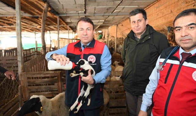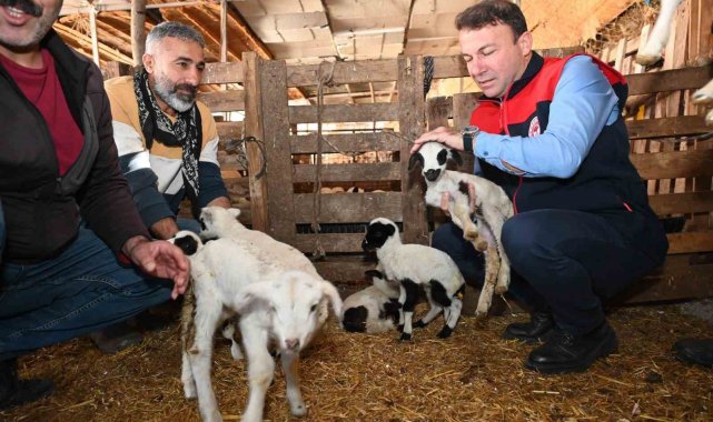 Tarım teşkilatı koyunu 9 doğuran besiciyi ziyaret etti