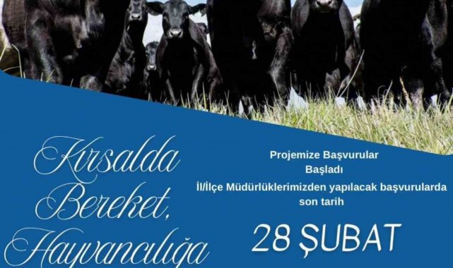 Tarım ve Orman Bakanlığı, hayvancılık sektörünü desteklemek ve kırsaldaki aile işletmelerini güçlendirmek amacıyla Kırsalda Bereket, Hayvancılığa Destek Projesi'ni hayata geçiriyor. Proje kapsamında, Tarım ve Orman Bakanlığına ait etçi ırk damızlık büyükbaş hayvanlar üreticilere verilecek.