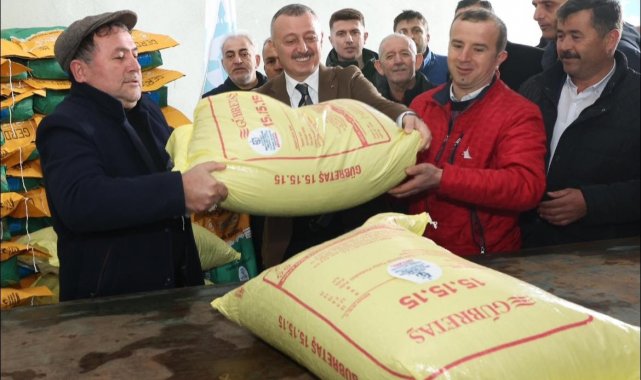 Programın devamında çiftçiler, yetiştirdikleri ürünleri Başkan Tahir Büyükakın'a takdim ederek hatıra fotoğrafı çektirdi. Daha sonra çiftçilere tohum ve gübrelerini teslim edildi.