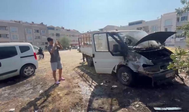 Tarlada başlayan yangın, 2 aracı küle çevirdi