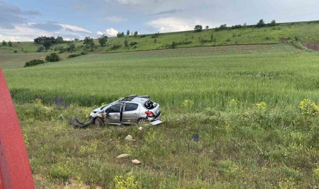 Tarlaya uçan otomobildeki 3 kişi yaralandı