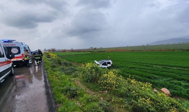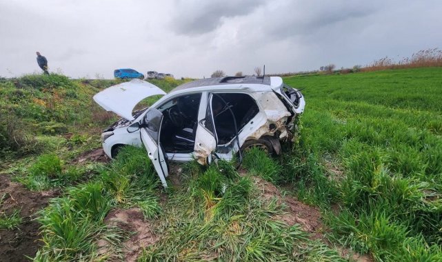 Tarlaya uçarak hurdaya dönen otomobildeki 2 kişi yaralandı