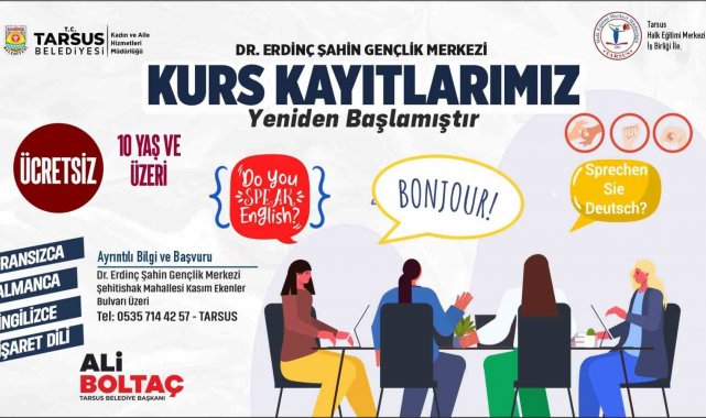 Tarsus Belediyesinin ücretsiz düzenlediği Fransızca, Almanca, İngilizce, işaret dili ve emlak danışmanlığı eğitimlerini kapsayan kurslar için kayıtların başladığı bildirildi.