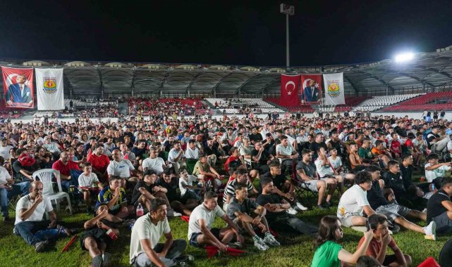 Tarsus'ta kurulan dev ekranda A Milli Futbol Takımının İspanya mücadelesini izleyen yüzlerce vatandaş, coşkuyu birlikte yaşadı.