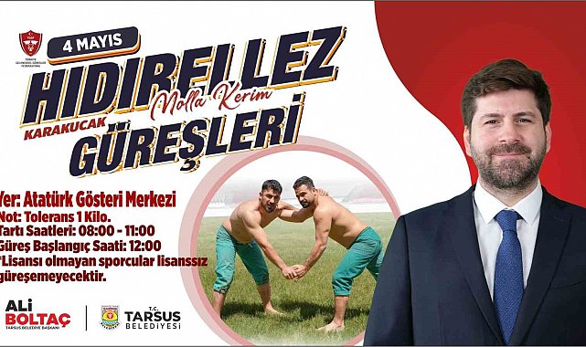 Tarsus Belediyesi tarafından geleneksel sporları yaşatmak ve genç nesillere aktarmak amacıyla düzenlenen 'Hıdırellez Molla Kerim Karakucak Güreşleri', 4 Mayıs Pazar günü başlıyor.