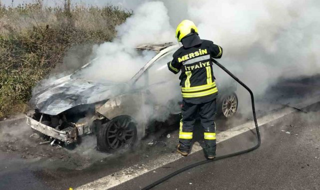 Durumu fark eden sürücü aracı güvenlik şeridine çekti. İhbar üzerine olay yerine intikal eden Mersin Büyükşehir Belediyesi İtfaiye ekipleri yangını söndürdü.
