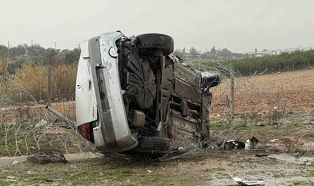 Mersin'in Tarsus ilçesinde yamur kazaya neden oldu, yoldan çıkan arac şarampole devrildi.