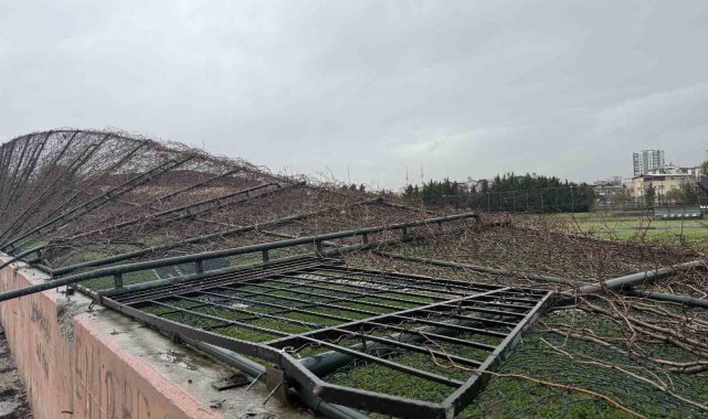 Bağlar Mahallesi'nde bulunan spor kompleksinin telle çevrili alanı şiddetli rüzgara dayanamayarak yıkıldı. Yeşil Mahalle'de iki ağaç kökünden sökülerek devrilirken, fırtınanın etkisiyle bir evin cam balkonu da patladı.