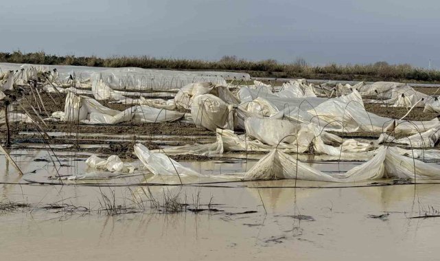 Tarsus'ta yağmur ve fırtına etkili oldu, seralar zarar gördü