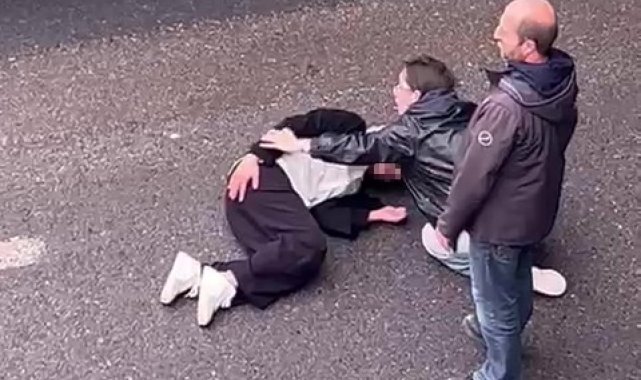 Kocaeli'de 24 yaşındaki genç kız, yanında bulunan kadınla tartıştıktan sonra köprüden atladığı ileri sürüldü. D100 Karayolu'na düşen genç kız ağır yaralanırken, polis ekiplerinden biri, titreyen kızın üzerine montunu örttü.