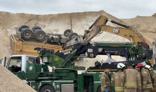 Çatalca'da taş ocağında kum boşaltırken devrilen kamyonun damperi arasında sıkışan 64 yaşındaki sürücü olay yerinde yaşamını yitirdi.