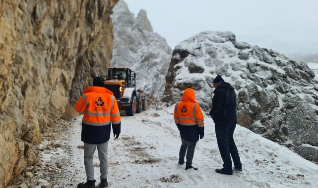 Kemaliye Taş Yolu güzergâhında, kar yağışıyla birlikte etkili olan olumsuz hava koşulları nedeniyle yamaçtan kopan kaya ve taş parçaları yol üzerine düştü.