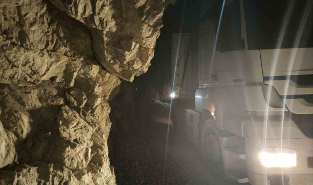 Gümüşçeşme köyünden ilçe merkezine seyreden 33 BAN 75 plakalı tır, ilçeye 3 kilometre kala Base-Jump bölgesindeki tünellerde sıkıştı.