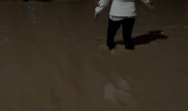Taşan dere nedeniyle sitenin bahçesi ve araçlar su içinde kaldı