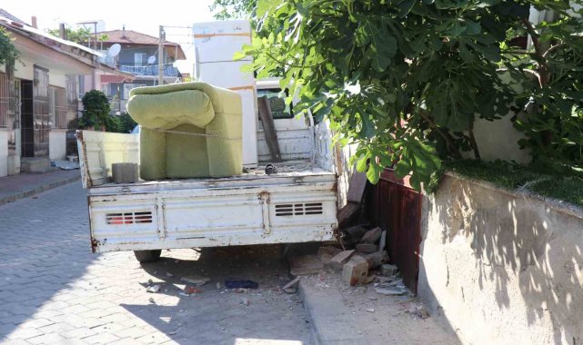 Denizli'de evindeki fazla eşyaları köy evine taşımak isteyen ev sahibi ve iki nakliye personeli, çöken balkonun altında kalarak yaralandı.