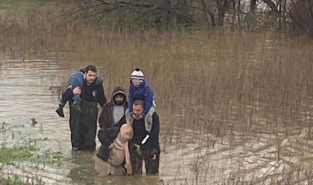 Taşkın sebebiyle mahsur kalan aile kurtarıldı