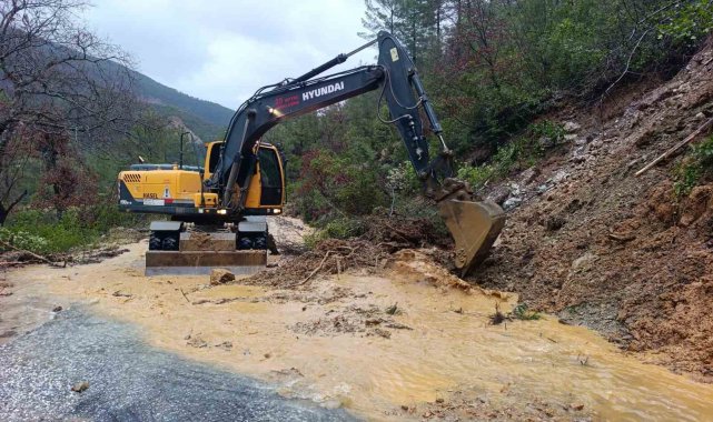 Antalya Büyükşehir Belediyesi ilçelerde etkili olan yağışın yol açtığı sel ve taşkın olaylarına müdahale ederken, Alanya'da da şiddetli yağışların kırsal yollarda oluşturduğu hasarlar onarılıyor.