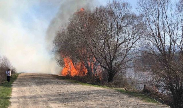 Amasya'nın Taşova ilçesinden geçen Yeşilırmak Nehri'nin kıyısındaki sazlık alanda yangın çıktı. Alevler itfaiye ekipleri tarafından söndürüldü.