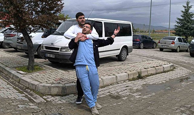 Afyonkarahisar'da hastanede gerçekleştirilen deprem ve yangın tatbikatında senaryo gereği bir hasta yakının sağlık çalışanını rehin aldığı anlar gerçeği aratmazken, tatbikata katılanlar oynadıkları rollerle usta oyunculara taş çıkarttı.
