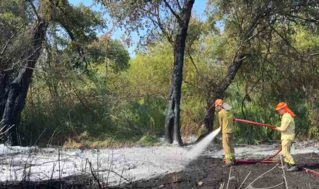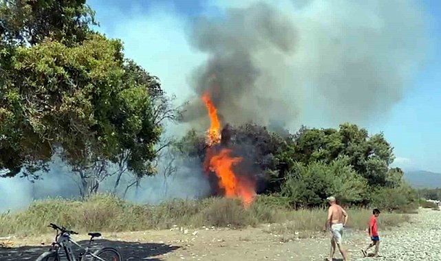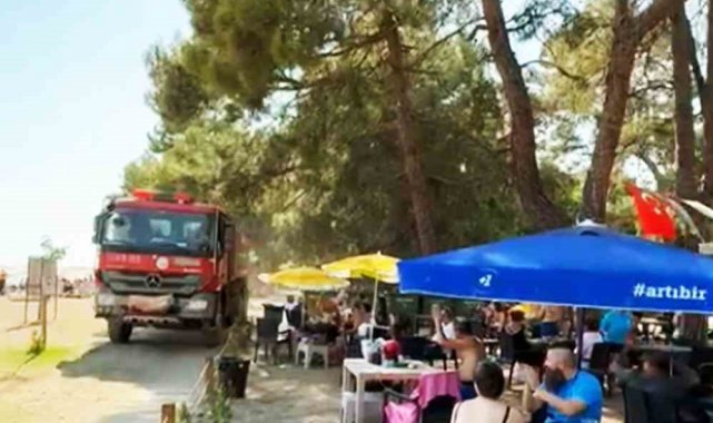 Orman ekipleri vatandaşların da katkısı ile yangına havadan ve karadan hızlı bir şekilde müdahale etmesi sonrası arazözleri ile sabit konuşlanma alanına hareket ettiler. Hareket halindeki orman ekiplerini tatilciler bu defa ıslık ve alkışlarla uğurladı.