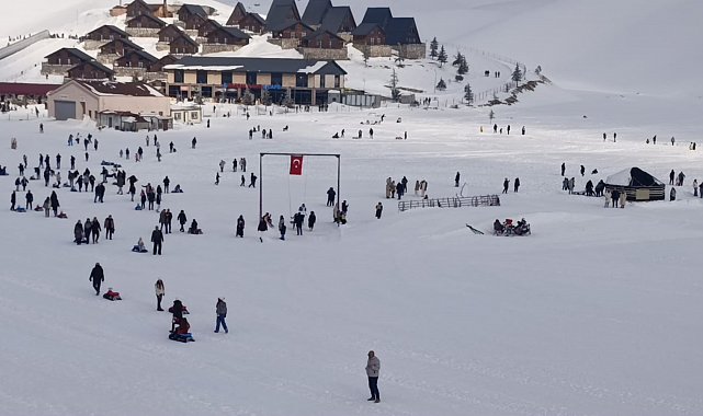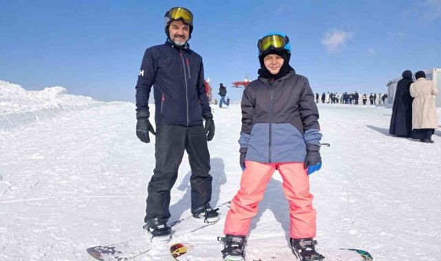 Kayak yapmaya gelenlerden Ahmet Kayra Durmuş, "Tatil çok iyi geçiyor. Babamla birlikte en büyük tepedeyiz şu an. Kaymak çok eğlenceli, herkes gelsin" dedi.