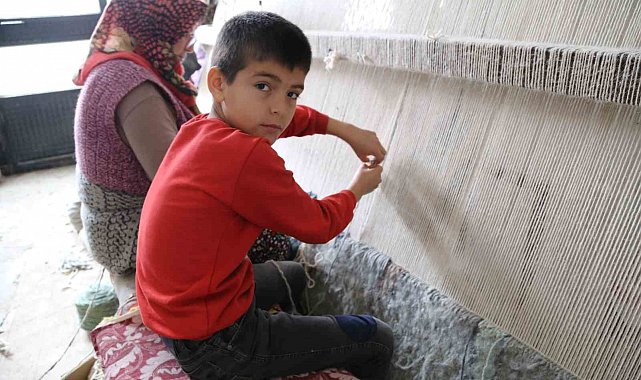 Gördes'in Güneşli Atatürk İlkokulu 3. sınıf öğrencisi Batuhan Demir, bir zamanlar halıcılığın merkezi olan Gördes'te tatillerde annesiyle beraber halı dokuyor.