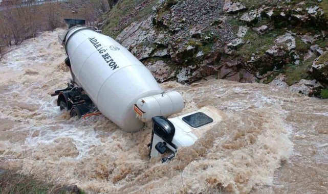 Bitlis'in Tatvan ile Hizan ilçeleri arasındaki dereye beton mikseri uçarken, sürücünün ise akıntıya kapılarak kaybolduğu bildirildi.