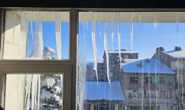 Tatvan'da çatılarda 2 metrelik buz sarkıtları oluştu