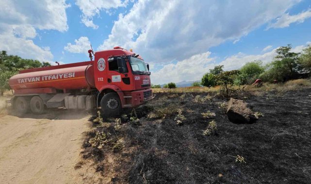 Bitlis'in Tatvan ilçesine çıkan yangında, içerisinde meyve ağaçları ve yemlik otların bulunduğu yaklaşık 50 dönümlük alan kül oldu.