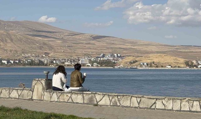 Bitlis'in Tatvan ilçesinde ekim ayının ortalarında etkili olan güneşli hava, vatandaşları dışarıya çekti.
